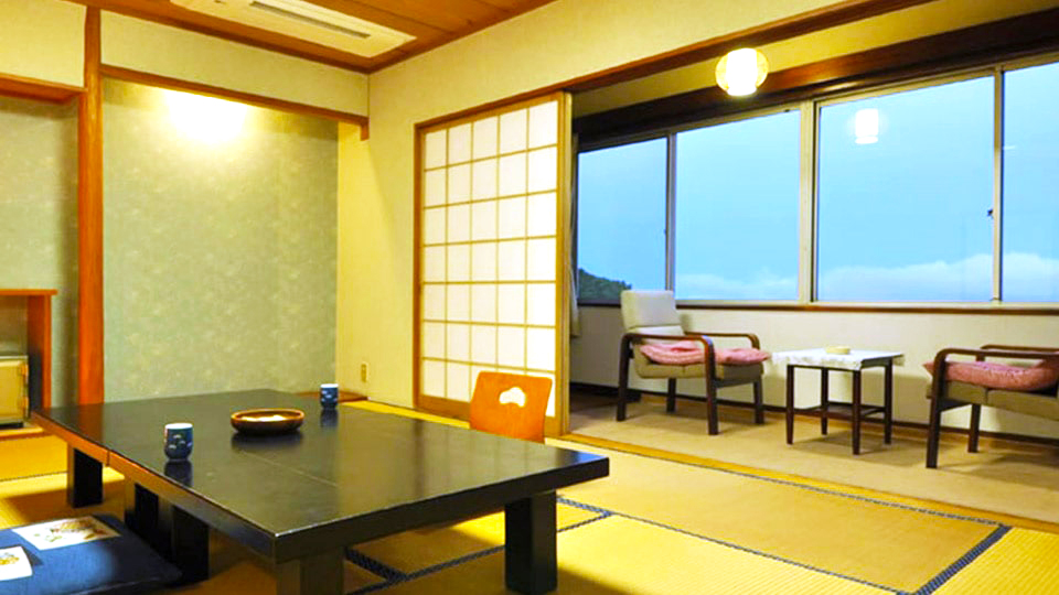 ■絶景、源泉かけ流し三原山温泉。グレードアップの客室内風呂も温泉。
