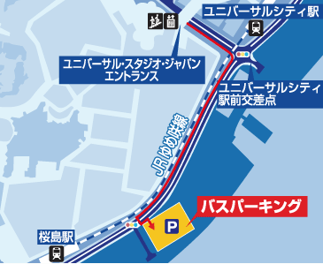 =ユニバーサル・スタジオ・ジャパン(8:00頃着)=開園予定時間30分前よりスタジオパス受渡し= =開園~閉園までフリータイム= =ユニバーサル・スタジオ・ジャパン(A日程 21:40/B日程 20:40発)=[車中泊]