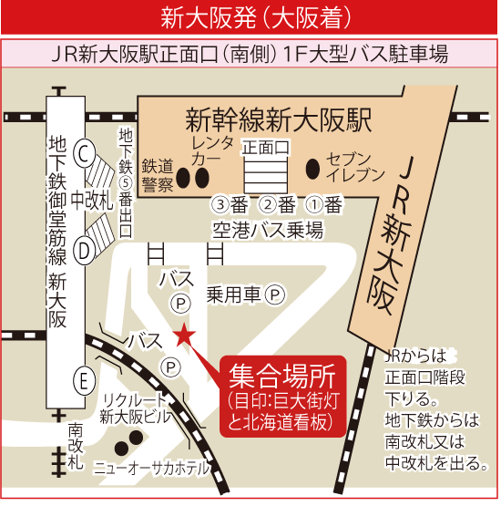 ■バスは基本的に横4列シートのスタンダードタイプ(トイレなし)を利用いたします。バスの最後列のシート及び一部のシートはリクライニングがあまり倒れない場合があります。また、お座りいただくシートの位置により前後の間隔が異なる場合がございます。 ■バスにはトイレは付いておりません(お手洗い休憩は2~3時間毎にございます) ■集合場所、時刻を厳守してください。定刻までに集合されない場合は前途放棄されたものとして、バスは出発いたします。 ■車中禁煙です。 ■運行中はバス乗務員の指示に従ってください。また、車内においては、他のお客様のご迷惑にならないよう、マナーをお守り頂くようにご協力ください。 ■お申し込み状況により相席となる場合がございます。 ■乗車人員によって中型や小型バス(マイクロバス含む)等で運行する場合や路線バスを利用する場合もございます。路線バスを利用する場合は、出発到着時間や出発到着場所が変更となる場合もございます。 ■途中の道路・交通事情・気象条件等不可抗力により予定通り運行できない場合がございます。その場合、斡旋員または乗務員より行程変更(下車観光及び立ち寄り箇所の時間短縮又はカット等)のご案内をさせていただきます。尚、運行スケジュールが極端に変更となった場合でも、タクシー、旅館、料理などの提供には応じられません。また一切の返金に応じることはできません。予めご了承ください。 ■各方面行程表に記載のバス停以外にも乗降車する場合がございます。 ■乗車場所は宿泊箇所により指定されます。また、予約(指定乗車場所)以外の場所では乗降できません。 ■なお、安全走行のため、特に記載のない限り、バス乗車における幼児無賃はお受けできません。必ずバス座席の予約・購入をお願いいたします。 ■道路交通法により、座席シートベルトの着用が義務化されていますので、あらかじめご了承ください。 ■バスは、他のツアーのお客様との混乗になる場合があります。 ■バスには、ペット・危険物・壊れやすいもの(自転車・車いす・楽器等も含む)のお持ち込み及びトランクでのお預かり出来ませんので予めご了承お願いします。 ■お一人様のお荷物(2つ以上の場合は全て合わせて)が、縦・横・高さの三辺の合計が1m以内でお願いします。(スキーツアー・登山ツアーを除く) ※「バスにトランクがない」と記載がある場合は、手荷物程度となり、大きい荷物はお断りする場合がございます。