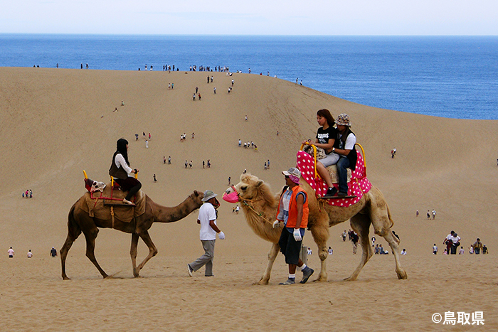 梅田・プラザモータープール(9:30発) =≪中国・鳥取自動車道≫= =鳥取砂丘(各自自由食12:30-13:45)=東郷温泉(14:30頃着)= はわい温泉・千年亭(14:15頃着) 東郷湖に面した湖上露天風呂を満喫ください