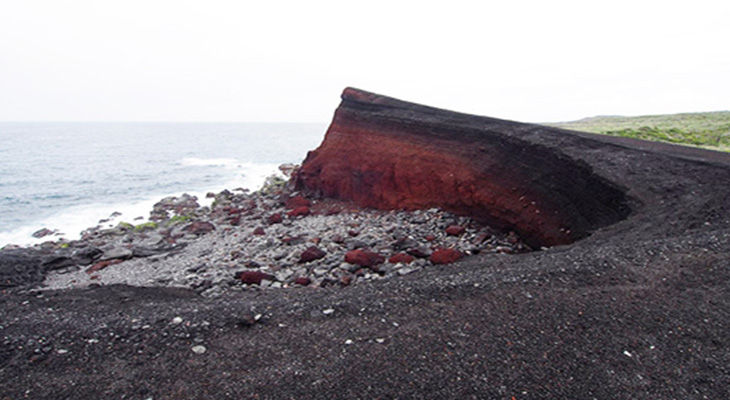 1983年の噴火の際に、海底爆発で噴出したスコリアが降り積もり、一夜にして出現した山です。目の前にそびえる赤と黒の壁は圧巻です!この周辺は磯釣りのポイントとしても有名です。