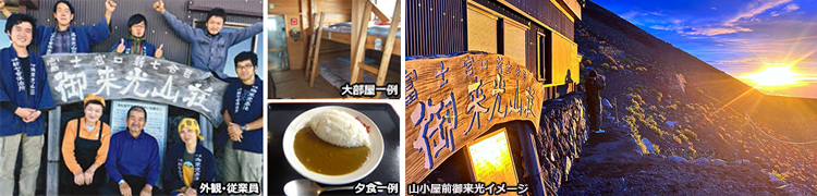 ・登山ツアーで利用する山小屋は、一般の宿泊施設(ホテル、旅館等)とは違いますのでご注意ください。 ・プランにより山小屋を利用いたしますが、指定プラン以外は山小屋を指定することはできません。利用する山小屋は出発当日の案内となります。山小屋指定プランでも突発的な理由により山小屋を変更していただく場合があります。 ・富士山の水は非常に貴重で、「水」「湯」などは自由に使えません。各山小屋ではペットボトルの水を有料販売しています。