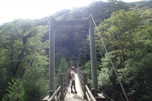 さつき吊り橋まではバス観光の方も軽く歩いて回れますが、この橋を渡るといよいよ苔むす世界への登山道が始まります。