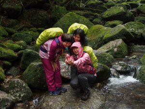下山もたっぷり遊びながら帰りましょう。雨でも美しく幻想的な屋久島の森、何度でも撮影タイムOKです。携帯は濡れないようにジップロックに入れるなど、防水対策は万全に。