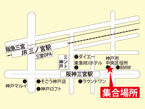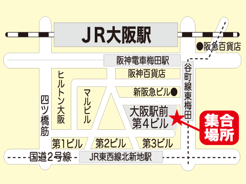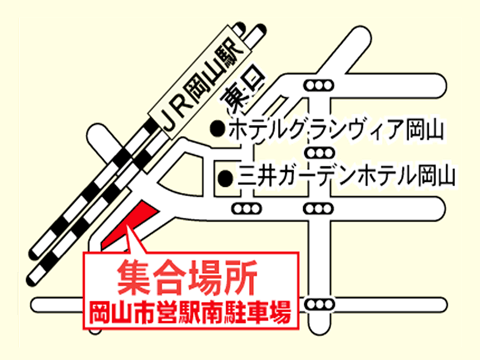 =JR草津駅周辺※(5:10頃着)=JR京都駅周辺(6:00頃着)=JR大阪駅周辺(7:00頃着) =近鉄なんば駅周辺(7:20頃着)=三ノ宮(8:20頃着/400円UP) |