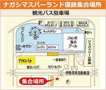 京都竹田駅 12月9:20発/1月9:45発/2月10:15/3月10:30 ↓バス ![]() ナガシマリゾート 12月11:40頃着/1月12:05頃着/2月12:35頃着/3月12:50頃着 =フリータイム= [復路1日延長では宿泊先は各自手配] |