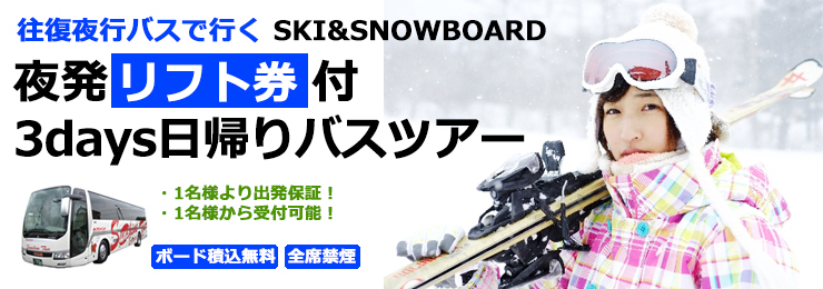 行きは夜行バス+出発翌日のスキー場リフト1日券+お帰りも夜行バス