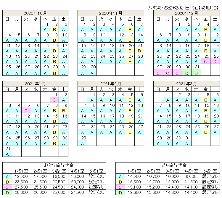 【客船】 東京(竹芝)⇒ 大型客船(2等・指定席)⇒ <船中泊> ----------------------------------------------------------------------------------------------------- ⇒ 八丈島(翌朝着) 到着後フリータイム 宿泊施設泊
