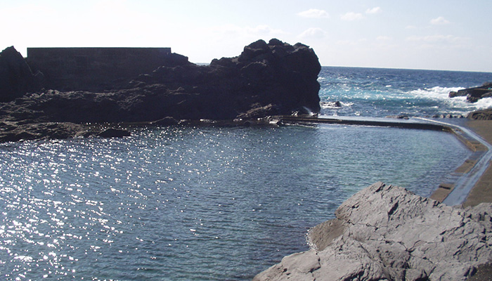 八丈島の南東・末吉地区の海に面した高台にある温泉施設です。大露天風呂と内風呂である展望風呂があり、太平洋の大海原と小岩戸ヶ鼻・八丈島灯台を見渡すことができます。