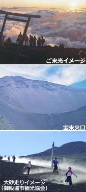 山小屋(1:00頃)出発…(各自で登山約2~3時間)…御殿場口山頂 各自で御殿場口より下山開始===山小屋に立ち寄り朝食・・・大砂走り・・・ 富士山五合目(御殿場口)(10:00発)===湯らぎの里(12:00着)※到着が早くなる場合あり ===富士山スカイライン(乗換専用シャトルバス)=== ===富士・湯らぎの里(入浴/昼食・約100分)=== ===JR新富士駅(15:30頃)===JR富士駅(15:40頃) |